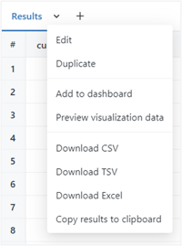 All executed queries can be easily downloaded for further analysis in CSV, Excel, and TSV formats or added to a Dashboard for further data exploration.