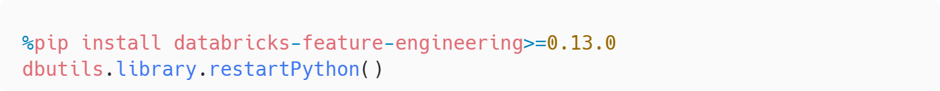 These are the bare minimum requirements. It’s also worth checking that your cluster has internet access for package installation and that you’ve got the right permissions to create Lakebase instances in your workspace. To install the databricks-feature-engineering library, use the following code in Databricks:
