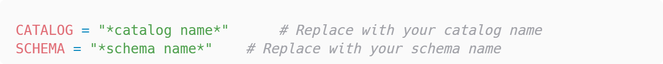 We then point the notebook at the right Unity Catalog location by setting CATALOG and SCHEMA. Swap these for your own catalogue and schema names. Keeping features in UC means you get governance, lineage, permissions, and discoverability as part of the platform, which is exactly what you want when multiple teams are consuming the same features in training and production.