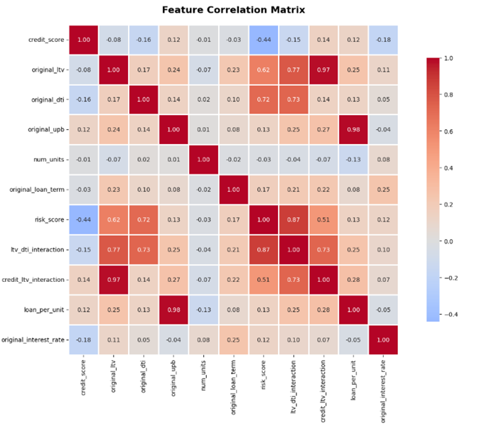 # Define feature groups numeric_features = [ 'credit_score','original_ltv', 'original_dti', 'original_upb','num_units','original_loan_term','risk_score','ltv_dti_interaction','credit_ltv_interaction','loan_per_unit' ] categorical_features = [ 'credit_score_category','loan_size_category','ltv_category','dti_category','property_type_simple','occupancy_simple','loan_purpose_simple','property_state']