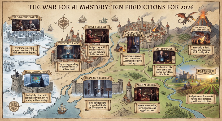 In 2026, the boring plumbing becomes the main work: governed data products, semantics, permissioning, retrieval quality, and eval sets built from real claim chaos.
